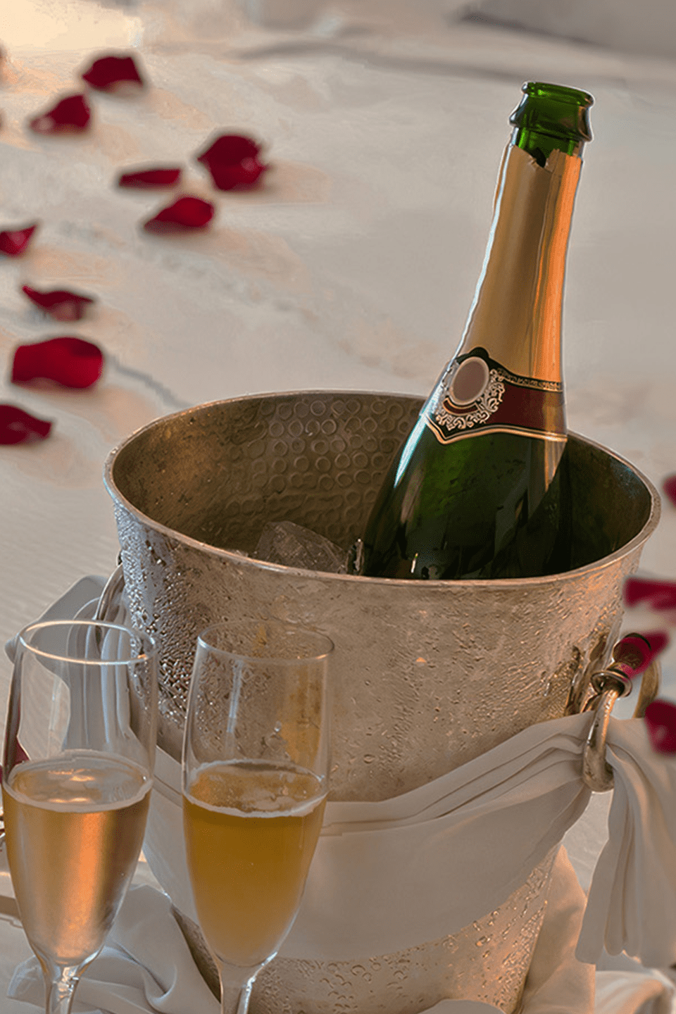 Para um pedido de namoro, casamento ou a primeira escapadinha a dois! Espumante, snacks e algumas surpresas são a combinação perfeita para ficarmos na sua memória!