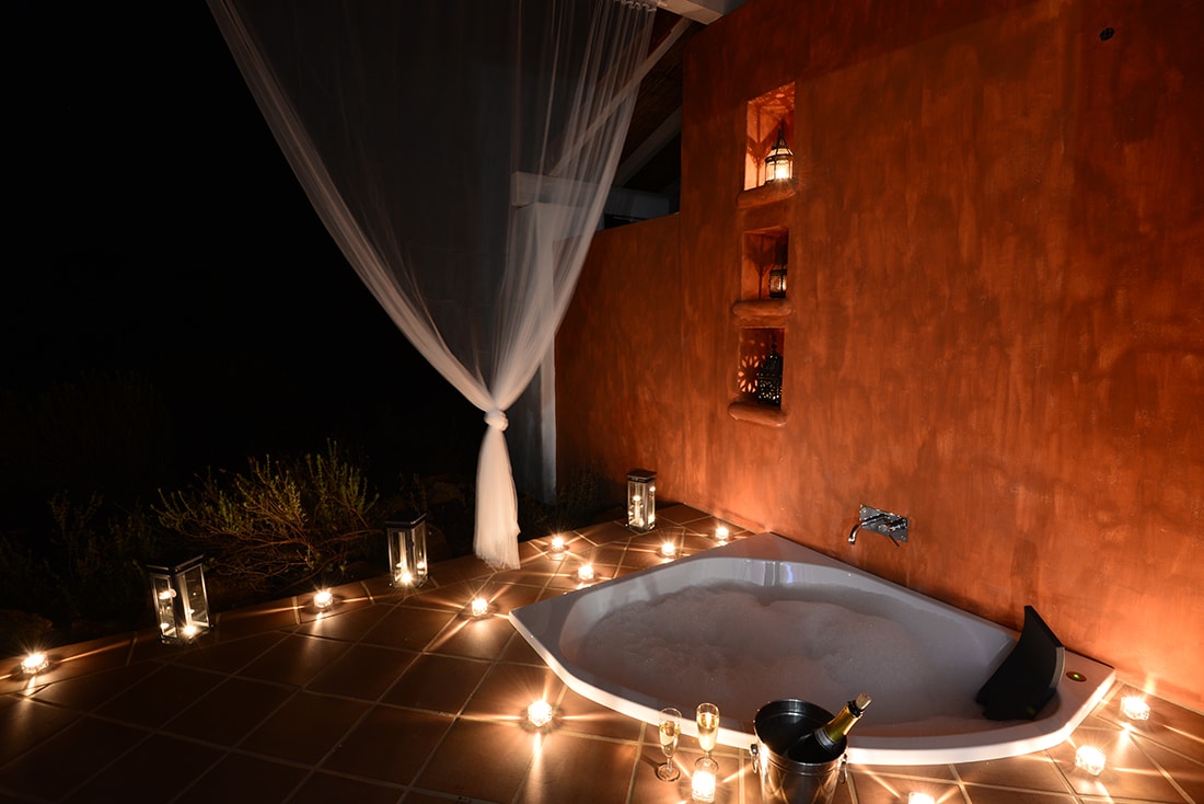 Utilização privativa, a dois, do Jacuzzi Suspenso à luz das velas e garrafa de espumante.